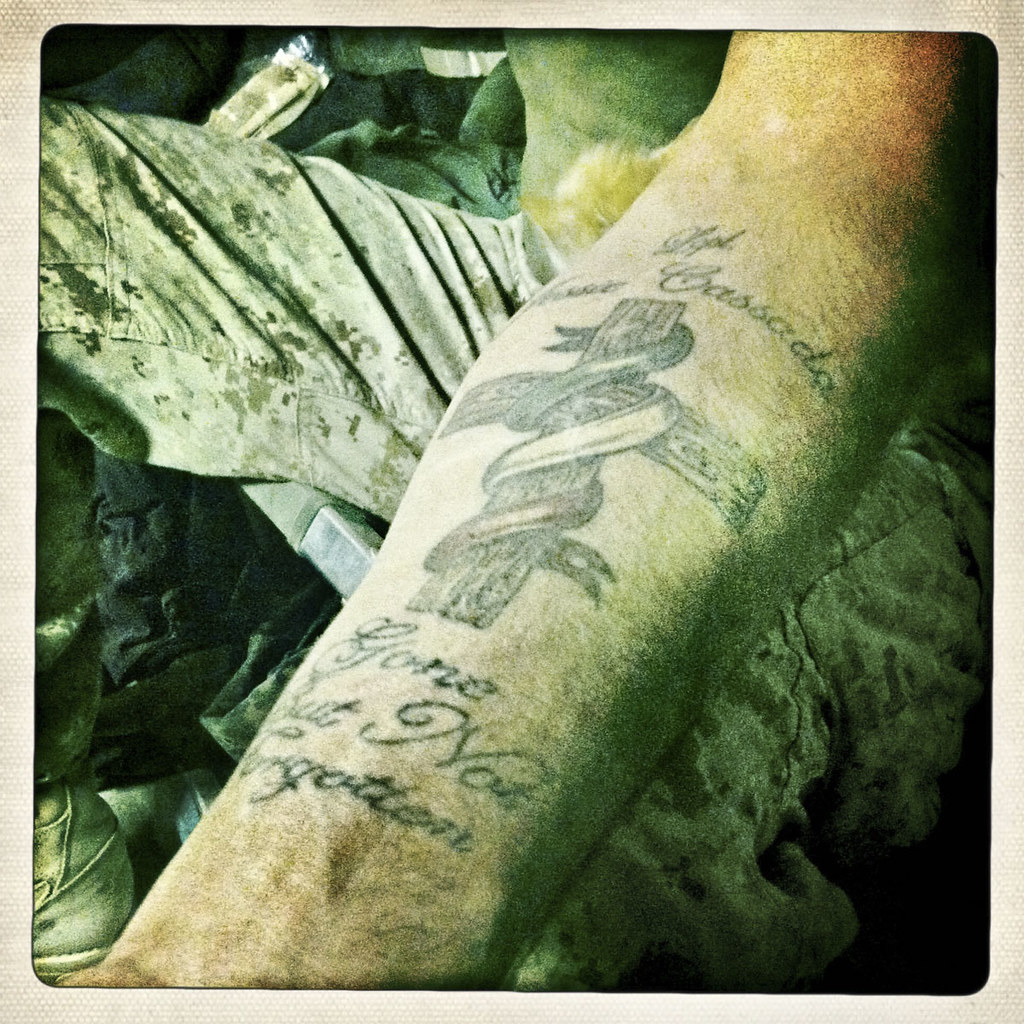 My sisters tattoo. Wagon wheel for Grandpa A. and glads for Grandpa C